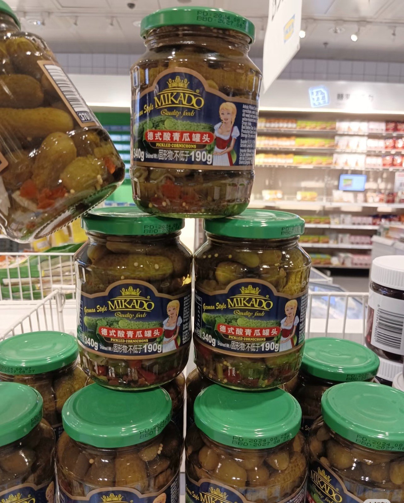 宜家瑞典食品店的米卡多德式腌黄瓜已正式到货。一罐罐金黄透明的腌黄瓜整齐陈列,为您带来地道的欧式风味。