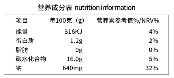 配料:黄瓜、水、糖、酿醋、盐、芥菜籽、蜂蜜